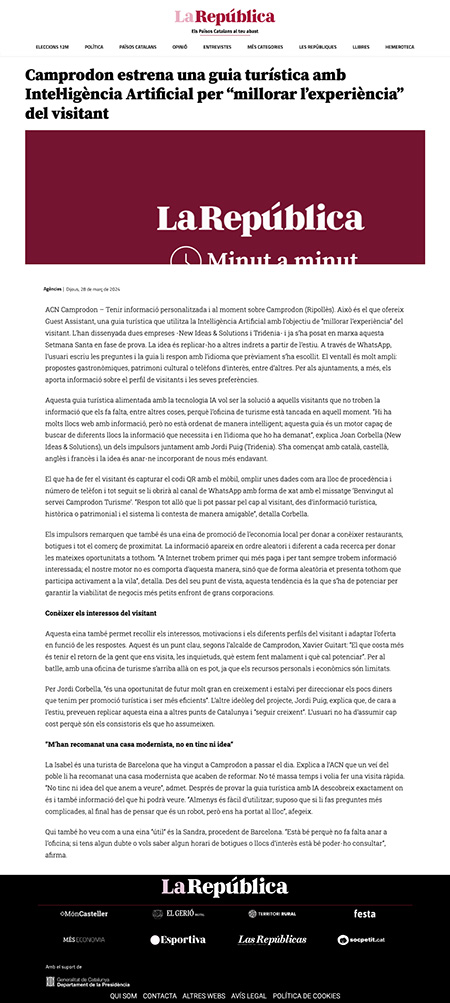 A continuación, se presenta una recopilación de las noticias más destacadas publicadas a partir de estas iniciativas, que reflejan el creciente interés y el impacto positivo que Guest Assistant está generando tanto a nivel local como en el conjunto del territorio.