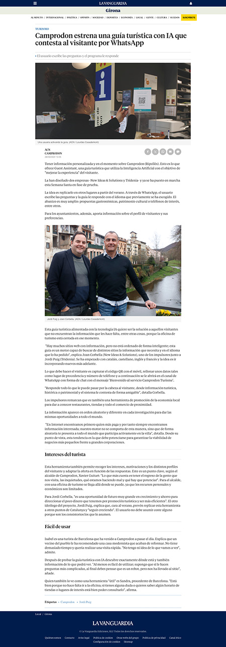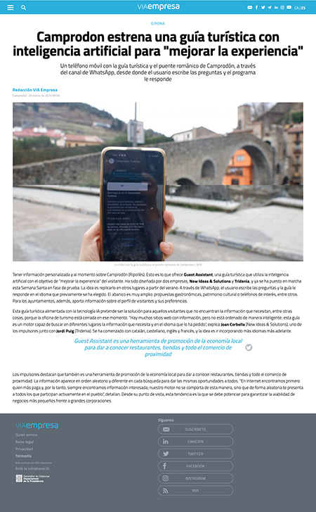 Guest Assistant ha sido protagonista en los medios de comunicación gracias a su implantación en distintos municipios que apuestan por la digitalización de la atención turística.